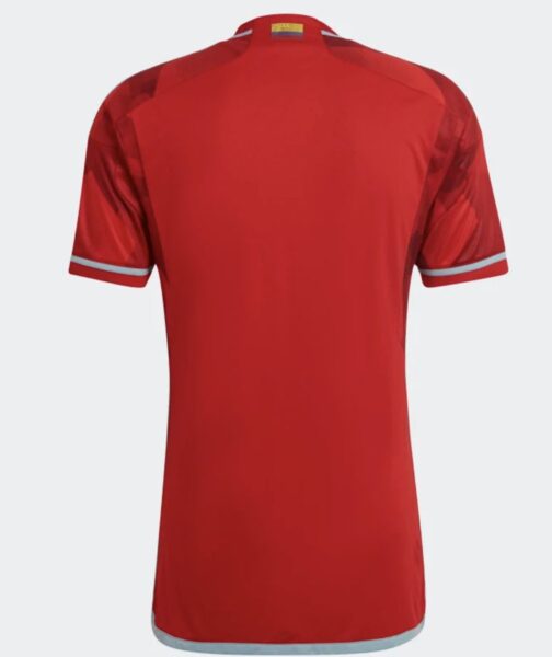 Esta equipación retoma el color rojo de la bandera, que no se usaba desde hace dos mundiales, con una serie de pentágonos degradados en diversos tonos rojizos.