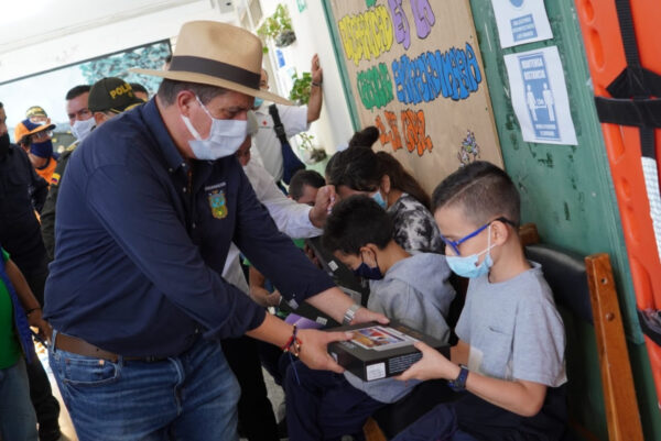 Los estudiantes de las instituciones educativas Marco Fidel Suárez, Sagrados Corazones, La Marina y las sedes Peralonso, Nápoles y Playa Rica, recibieron 1054 Kits escolares y 57 tabletas para los niños y niñas con discapacidad.