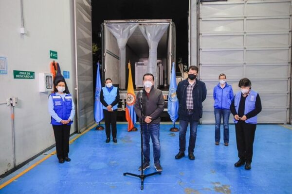 En la recepción de las vacunas estuvieron, además del ministro Ruiz Gómez, el secretario General del Ministerio de Salud, Gerardo Burgos, Víctor Muñoz, director del Departamento Administrativo Presidencia de la Republica (Dapre); Patricia Llombart, embajadora de la Unión Europea en Colombia; Jessica Faieta, coordinadora Residente de Naciones Unidas; Gina Tambini, representante de la OPS/OMS y Aida Oliver, representante de Unicef en Colombia.