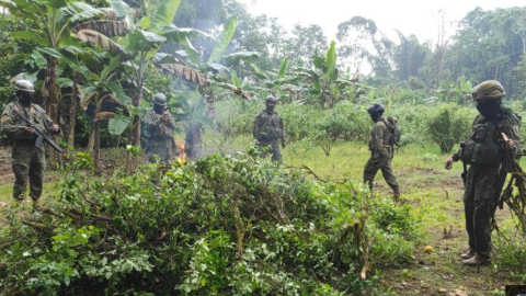 Militares de Ecuador destruyeron aproximadamente 10.000 plantaciones de coca en el sector de Puerto Rodríguez, en el cantón (municipio) de Putumayo, de la provincia de Sucumbíos (norte), fronteriza con Colombia, informó el Ministerio de Defensa Nacional.