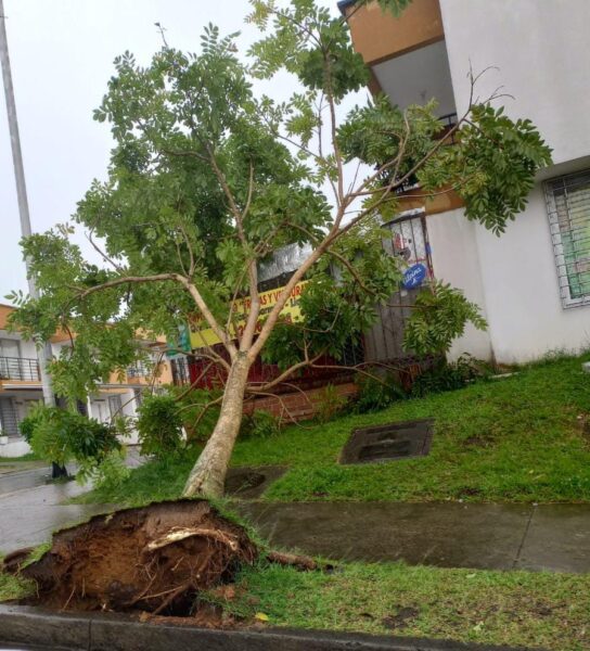 La caída de dos árboles en el barrio Molivento, inundaciones menores, el destechamiento de dos viviendas; una en Comuneros y otra en Maracay, es el balance parcial reportado por la Diger, luego del fuerte aguacero que se registró en la tarde de este martes en Dosquebradas.