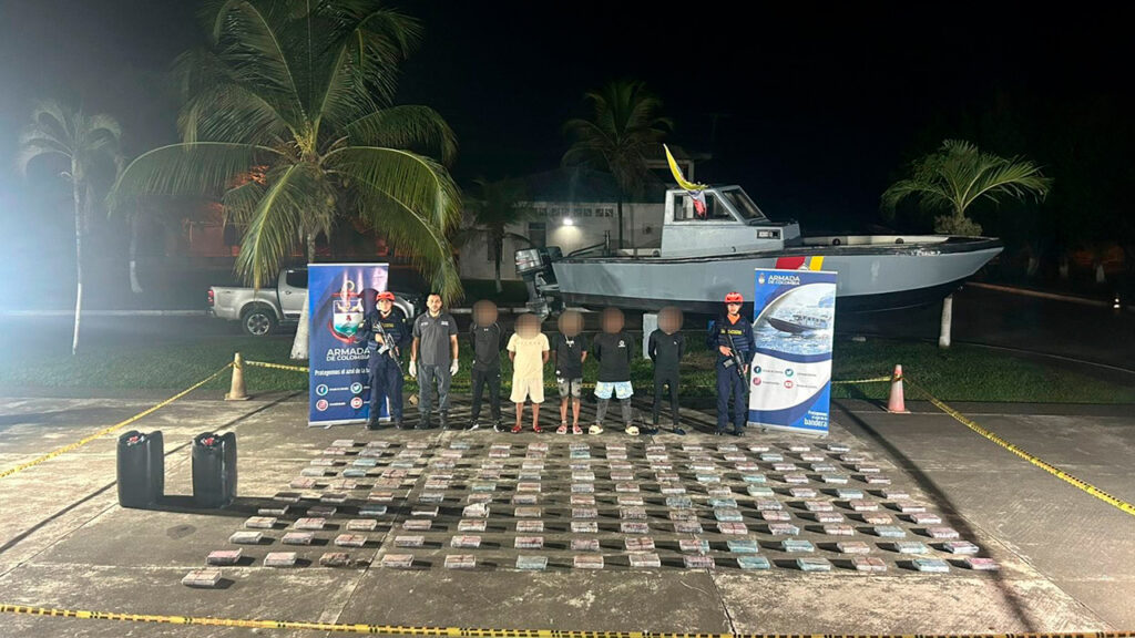 Además, la Armada Nacional reportó la captura de cinco ciudadanos panameños en aguas de Colombia, cuando transportaban un alijo de cocaína avaluado en 4,8 millones de dólares.
