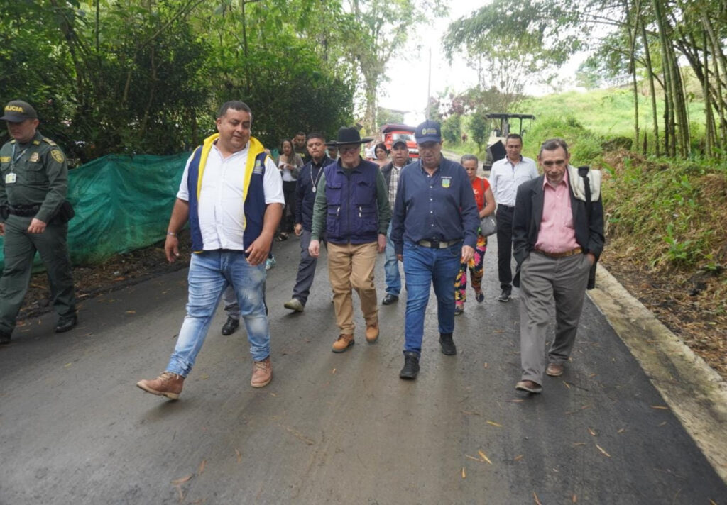 En compañía de la comunidad el gobernador de Risaralda Victor Manuel Tamayo Vargas hizo recorrido de obra en la vereda Agua Azul del municipio de Dosquebradas, donde se está aplicando asfalto en 200 metros de la vía.