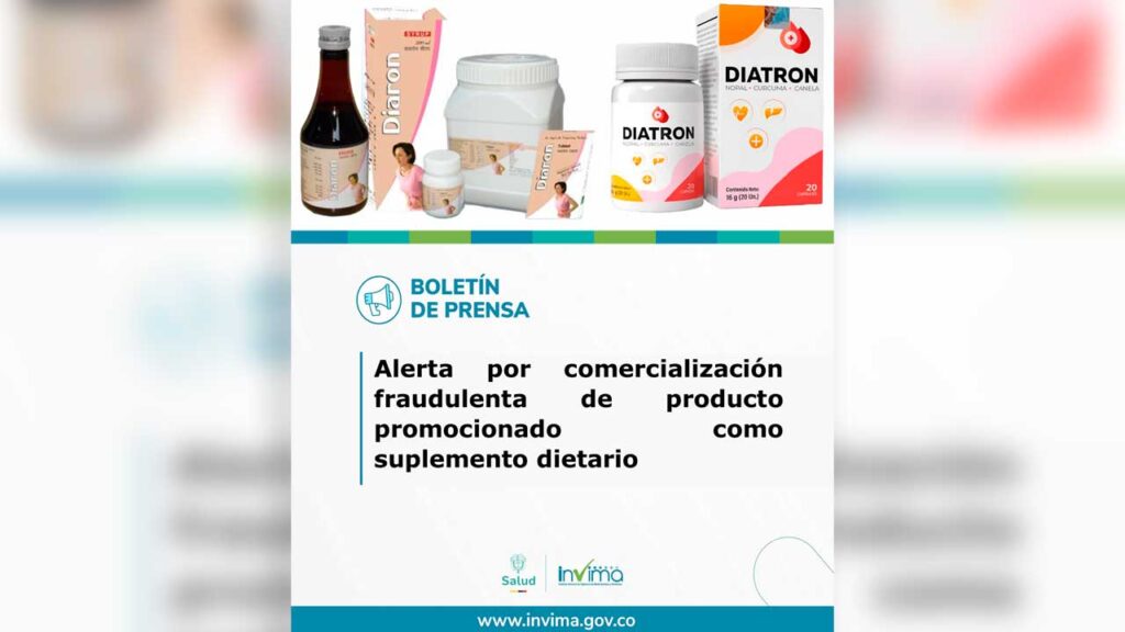 El Instituto Nacional de Vigilancia de Medicamentos y Alimentos (Invima) alertó sobre la comercialización ilegal en Colombia del producto ‘Diatron’, promocionado como suplemento dietario para controlar el azúcar y el equilibrio metabólico.