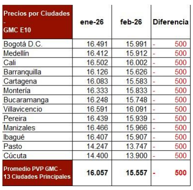 Desde el primero de febrero, la reducción de $500 por galón de gasolina se materializa y se aplica de manera homogénea en las ciudades del país, con precios más favorables para los consumidores, mientras se mantiene estable el precio del diésel, como se observa en las siguientes gráficas.