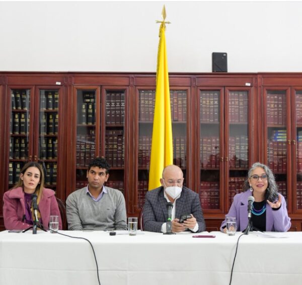 La senadora María José Pizarro; el presidente del Senado, Roy Barreras, y el presidente de la Cámara, David Racero, presentaron ayer el protocolo para la prevención y orientación contra el acoso en al interior del Congreso.