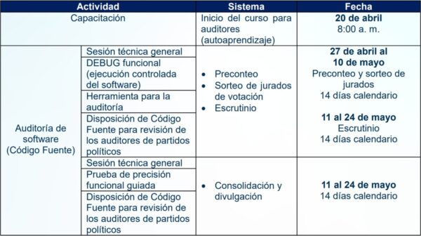 De igual manera, como una de las principales medidas de transparencia, el plan comprende la auditoría del Código Fuente de los softwares de sorteo de jurados de votación, preconteo, escrutinio y consolidación y divulgación de resultados por los auditores de los partidos políticos acreditados.