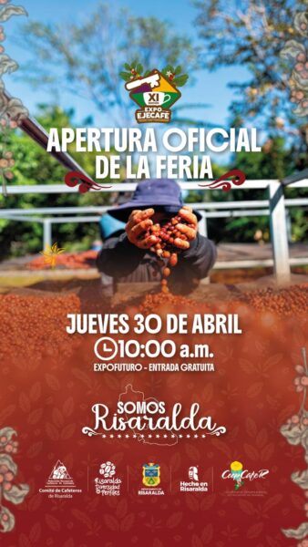 La invitación es para asistir al recinto ferial Expofuturo Pereira, los días 30 de abril, 1 y 2 de mayo; la entrada será gratuita para poder disfrutar de esta feria que contará con exposiciones de café de alta calidad de Risaralda, Caldas, Quindío y todo el país.
